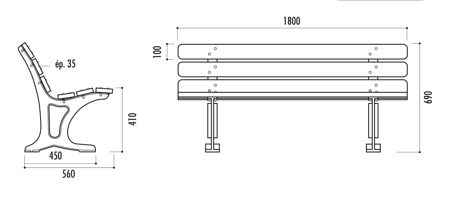 Le banc Séville est un banc urbain public avec des lames de bois exotique vernies et pieds en fonte traitée antirouille, ce qui permet au Banc Séville de résister longuement aux intempéries. Banc de mobilier urbain avec dossier : disponible en longueur 1800 mm et est composé d’une assise et dossier de 6 lames épaisseur 35 mm en bois exotique 1ᵉʳ choix certifié FSC, vernies traité fongicide, insecticide et hydrofuge et un piétement en fonte traitée antirouille finition peinture laquée noire fixé au sol par vis d'ancrage. Avec une grande résistance aux intempéries, ce banc public avec dossier bois et fonte est idéale pour l’aménagement des espaces verts et des voiries. Son design et sa couleur permettent de l'implanter dans tous les paysages. Le banc d'extérieur Séville s'intégrera parfaitement avec votre mobilier urbain existant.